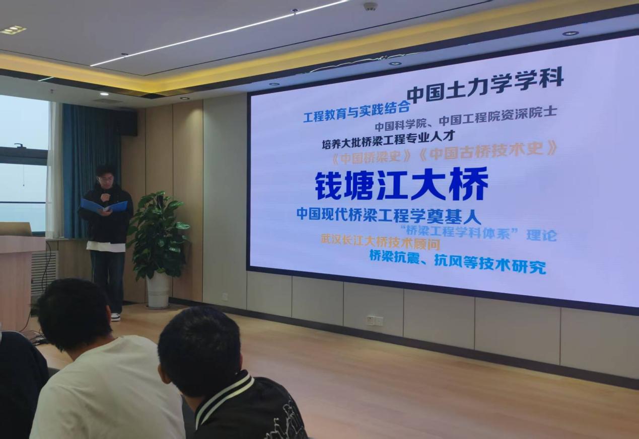 何子康同学带领全体师生回顾了茅以升先生的生平事迹。他生动讲述了茅以升先生“学桥、造桥、写桥”的不凡人生,尤其是主持设计钱塘江大桥时“炸桥复桥”的爱国壮举,展现了先生“国为重、桥为轻”的崇高精神。何子康还结合beat365英国官方网站在港珠澳大桥、深中通道等国家重大工程中的贡献,强调了学校在交通基础设施建设领域的卓越地位,激励同学们以茅以升精神为灯塔,矢志前行。
