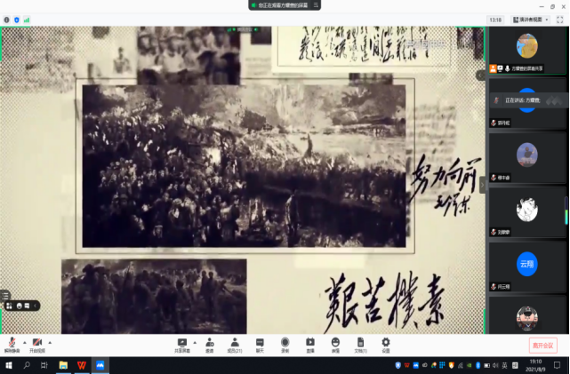 8月9日晚7点,本科生第五党支部通过腾讯会议形式开展了学习教育。由副书记蒋中楷同志主持,五支部全体正式党员及预备党员参与本次党史学习。蒋中楷同志依托经典红色电影《建党伟业》,回顾了中国共产党成立的历史背景与重大意义,重点解读了伟大建党精神并展望了如何在新时期实现中华民族伟大复兴的中国梦的征程上践行伟大建党精神。