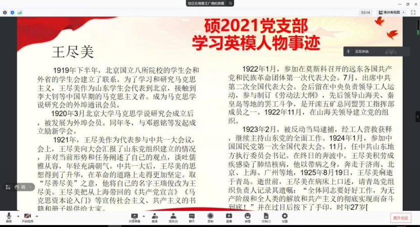 硕1912党支部学习王尽美事迹