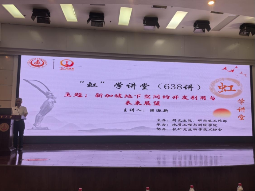 On the morning of April 30, the 638th "Hong" Academic Lecture, organized by the Graduate School and the Graduate Work Department, hosted by the College of Geological Engineering and Geomatics, and co-organized by the University Graduate Science and Technology Association, was successfully held at the Academic Exchange Center of the North Campus of the South Campus. Academician Zhou Yingxin of the Singapore Academy of Engineering delivered a report titled "Development, Utilization, and Future Prospects of Singapore's Underground Space." The lecture was chaired by Professor Zhai Yue from the College of Geological Engineering and Geomatics, with a total of 140 faculty members and students from related colleges in attendance.