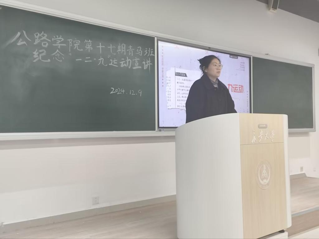 为深入学习贯彻党的二十届三中全会精神和全国教育大会精神,纪念“一二·九”学生爱国运动89周年,加强beat365官网青年学生爱国主义教育,继承革命传统,弘扬民族精神。12月9日晚于WH2208教室召开beat365英国官方网站第十七期青马班纪念“一二·九”运动主题宣讲。2024级本科生辅导员何子毅以及青马班全体同学参加了此次宣讲。