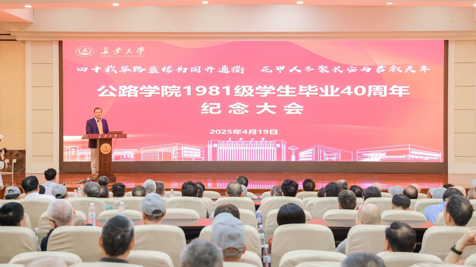 陈志坚代表学校向返校校友致以诚挚欢迎,并对广大校友长期支持母校发展表达深切谢意。他介绍了学校近年来的建设发展,系统阐述了学校围绕交通运输、国土资源、城乡建设等领域,服务国家重大战略的创新实践。他强调,校友是母校建设发展的坚强基石和最坚实最可信赖的力量,校友永远是学校最宝贵的财富和资源。希望各位校友继续发挥桥梁纽带作用,促进学校与校友以及与各地之间的交流与合作,积极参与到学校的发展建设中,也诚挚邀请各位校友常回母校看看。