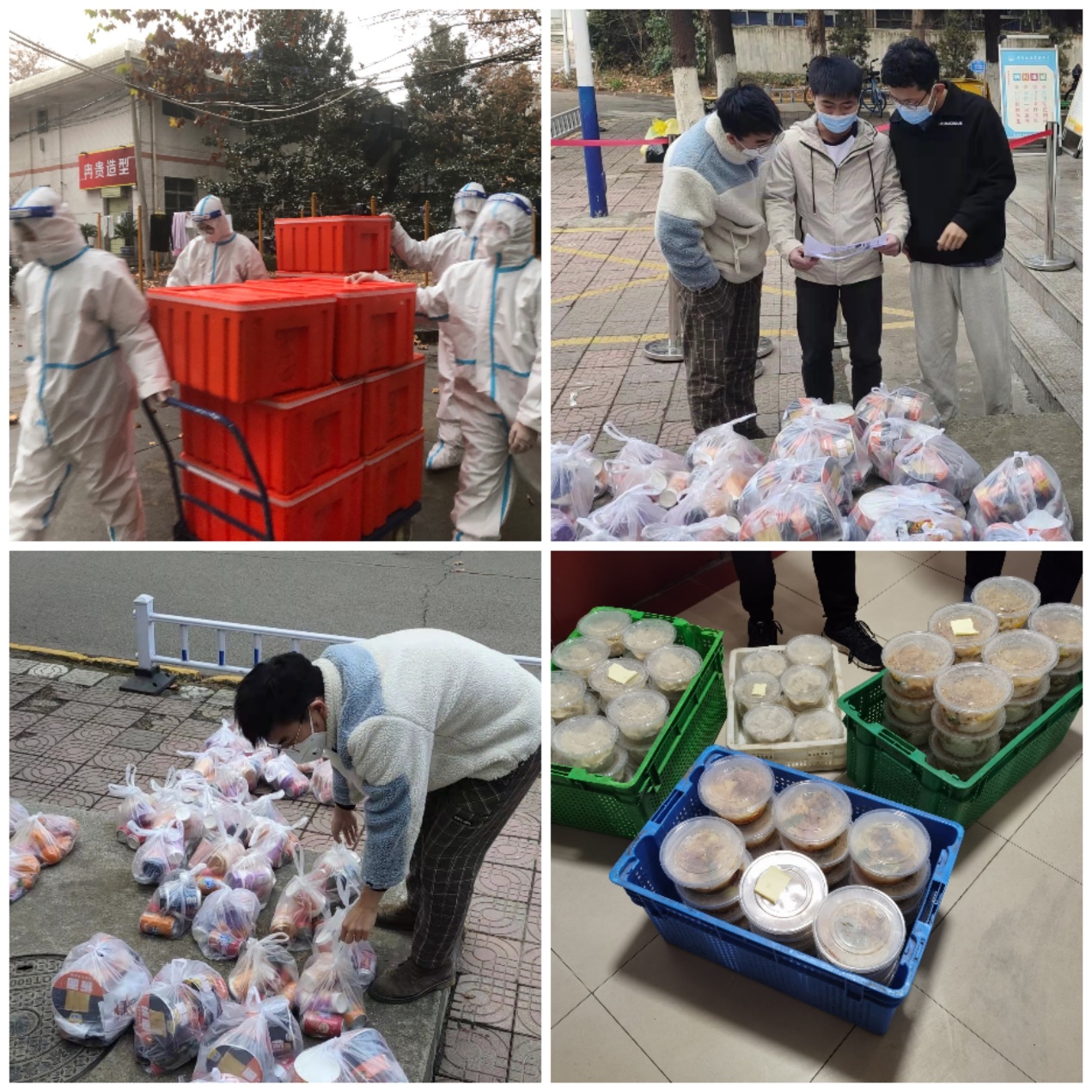 学院防疫工作组时刻关注疫情封闭期间的同学们的情绪,了解大家生活需求,并协调满足同学们的需求。宿舍封闭后,针对同学们日常饭菜供应的问题,beat365官网研究生党员和广大学生干部主动承担起制动同学们的饭菜配送工作。其中硕2004党支部成员、2112党支部吴健辉、李东睿等同学组织并参与进行物资供应、转运协助及饭菜配送工作。每次完成配送,脱掉防护服,他们都是大汗淋漓,但没有一位党员同学有丝毫抱怨,他们想的只是怎样能以最快的速度将饭菜送到宿舍,让同学们在寒冬吃上一口热乎的饭菜。面对时艰,beat365官网研究生党员迎难而上,冲锋在前,践行着共产党人“为人民服务”的宗旨,
