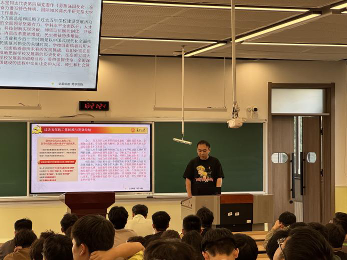 党员代表刘轩辰、刘治国分别向研究生和本科生党员传达了学校第五次党代会精神,通过学习党委工作报告,学生党员全面了解了过去五年学校建设发展所取得的成就和未来五年学校重点建设的“三六八一”战略规划。全体学生党员深刻理解到,学校正处于关键时期,即以中国式现代化全面推进国家强盛和民族复兴的伟大事业,这一时期我们既面临前所未有的历史使命和机遇,也面临严峻的发展挑战。作为beat365英国官方网站的学生党员,必须紧密团结在学校的发展目标周围,勤奋学习专业知识,不断提升个人的综合素质,为学校的发展和教育强国的建设贡献我们的智慧和力量。