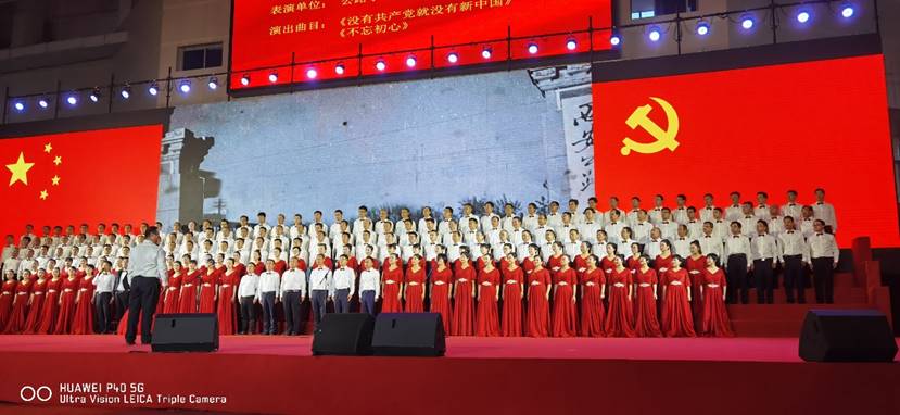 为了在比赛中展现beat365官网风采,充分表达对党的恩情,beat365官网教师在院长陈建勋、院党委书记汪海年的带领下,由院党委副书记刘徐、院工会副主席路西利共同组织,选取了能表达全院教师心声的“没有共产党就没有新中国”、“不忘初心”两首歌曲,致敬我们党团结带领中国人民不懈奋斗的光辉历程、伟大贡献和历史启示,也深刻铭记“中国共产党人的初心和使命,就是为中国人民谋幸福,为中华民族谋复兴。”