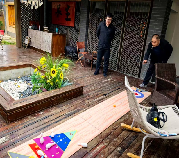 参观结束后,为增进同事间的沟通与情谊,工会在风景如画的馆区周边组织了丰富的团建活动。在轻松愉快的氛围中,大家参与了团队听歌词猜歌名,推冰壶,接力五子棋等团建活动。平日里在讲台和实验室里严谨专注的教授、学者们,此刻尽情投入,现场欢声笑语不断,其乐融融。