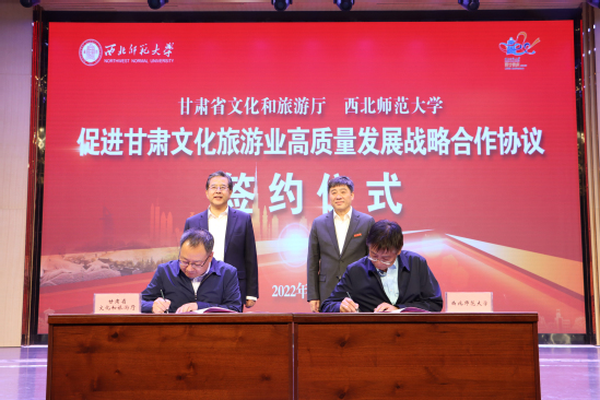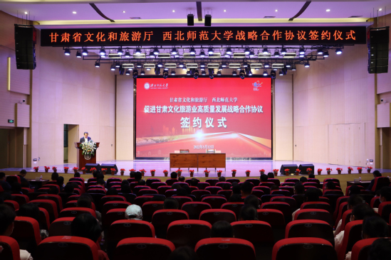 5月12日下午,甘肃省文化和旅游厅、188BET金宝搏官网促进甘肃文化旅游业高质量发展战略合作协议签约仪式在西北师大音乐厅顺利举行。省委宣传部副部长,省文旅厅党组书记、厅长陈卫中,西北师大党委书记张俊宗出席并致辞;省文旅厅党组成员、副厅长万学科,学校党委常委、副校长李朝东代表双方签约;党委常委、党委宣传部部长、副校长邓小娟出席并主持仪式。省文旅厅及西北师大相关部门负责人、部分师生代表参加仪式。
